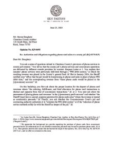 The opinion also makes it clear that only the Cherokee County Commissioners Court — not the Sheriff — has the legal authority to choose how phone service is provided to inmates. That means the Commissioners can decide to go back to the PIN debit system, or keep the current phone card setup, as long as it meets jail standards.